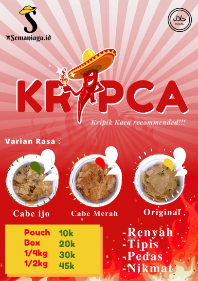 Kripik kaca rekommended!! Dengan varian rasa: - Cabe merah - Cabe Ijo -original Harga mulai dari 20k