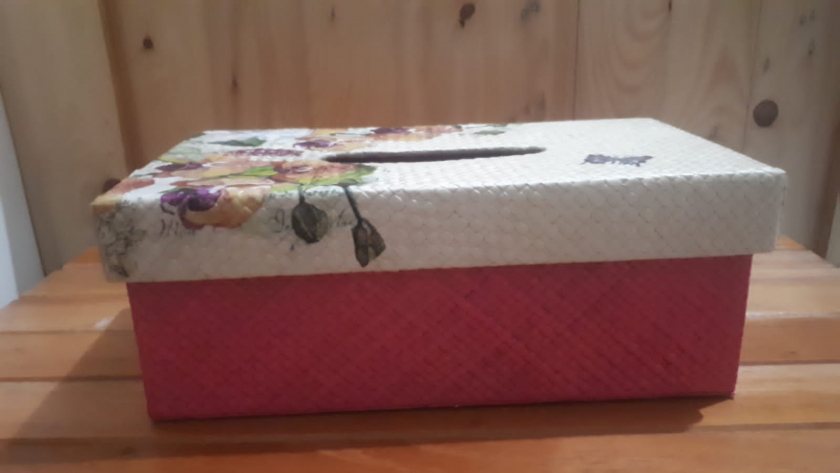 Tempat tissue Material: anyaman pandan+ decoupage Size: 25 x 14 x 8