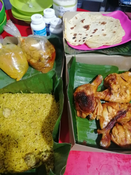Nasi briyani dengan beras basmati India dengan ayam Segar porsi 4 orang , Kari ayam spice isi 4 potong ayam paha pentung jumbo , tandori ayam paha pistol jumbo isi 4 , Kari kentang , paratha , free pounding India 2 cup, lapis susu keju loyang 22 tinggi 5/7 cm