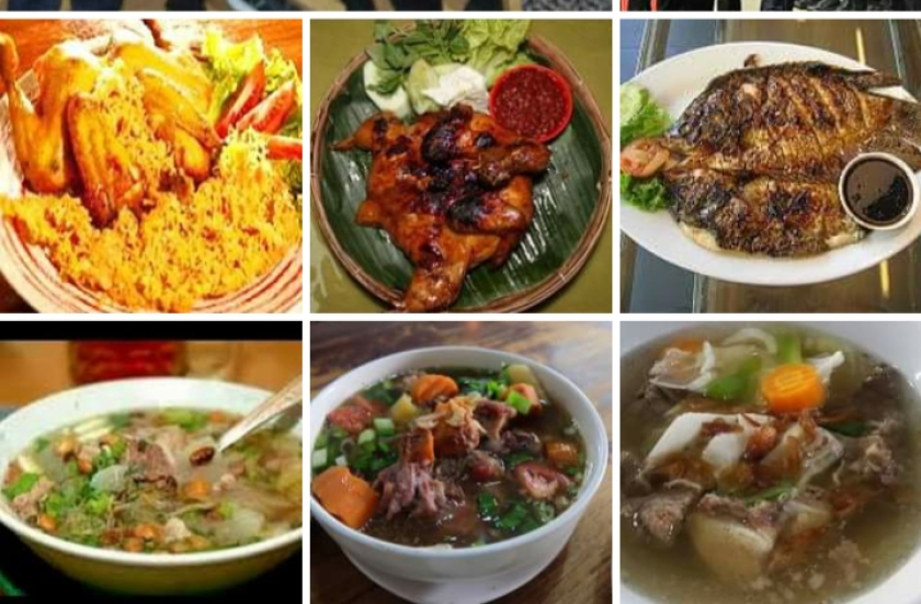 Ayam goreng ayam bakar soto ayam SOP iga SOP buntut ikan bakar