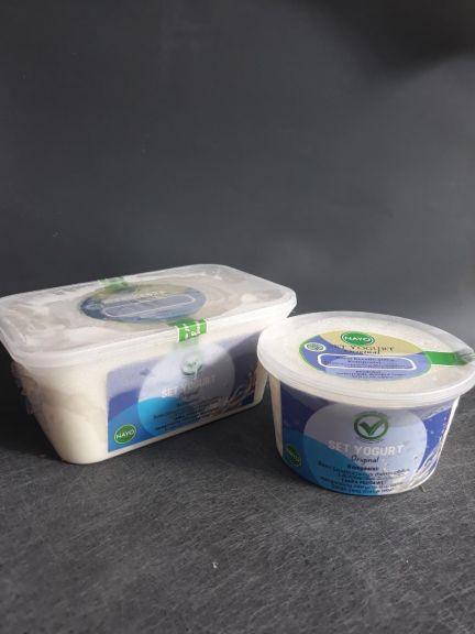 Set yogurt adalah yogurt plain yang dapat langsung dikonsumsi dan bisa juga untuk campuran membuat smooties, salad dressing, ice cream dll. Isi bersih 950 gram