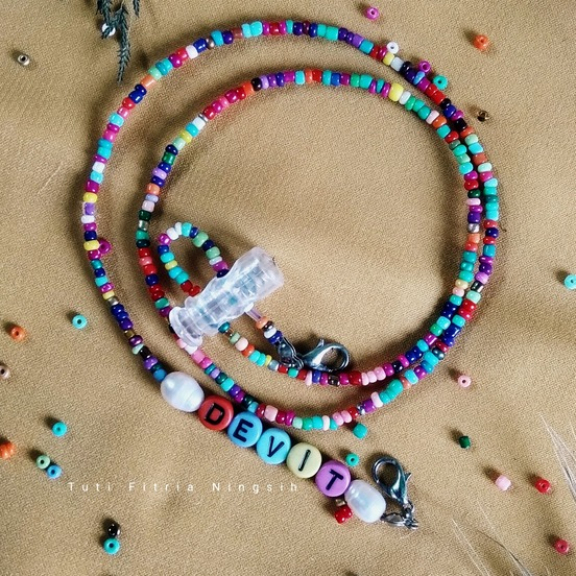 Panjang +-60cm Bisa disetting jadi konektor masker Bebas custome nama Cocok untuk ibu dan anak ( Couple )
