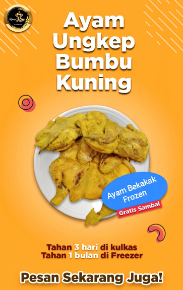 Ayam Ungkep Kuning Rasa nya Asin gurih Di masak dg rempah2 lokal sangat luar biasa sedap nya di Makan dg nasi hangat Dan sambal bawang putih yg Pedas.
