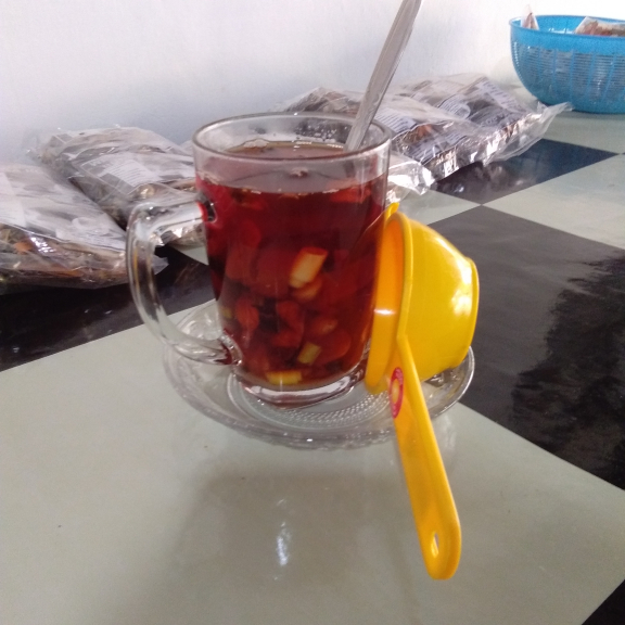 Yerbuat dari 9 rempah2 pilihan : Jahe emprit Kapulaga Cengkeh Kayu manis Kayu secang Sereh Daun pala Daun salam Daun jeruk wangi