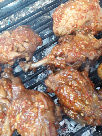 ayam dengan tekstur empuk di baluri bumbu pedas manis.