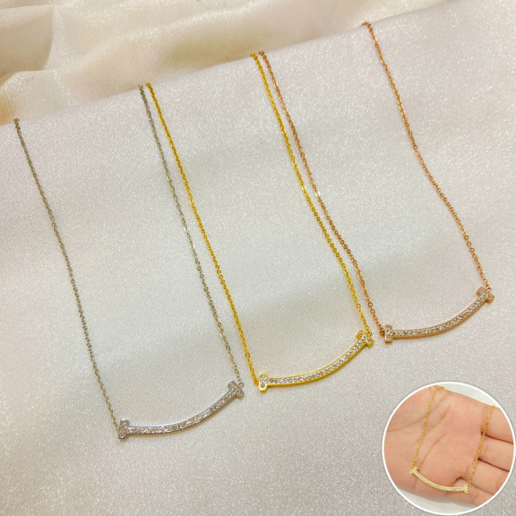 Kalung Titanium Steel Motif Smile Permata Aksesoris Wanita