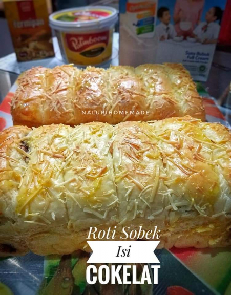 Roti sobek/sisir manis lembut dengan varian isian keju susu dan cokelat lumer. Ada topping keju parut/meises. Boleh mix isian dan topping. Satu pax berisi 12 pcs roti sisir/sobek.
