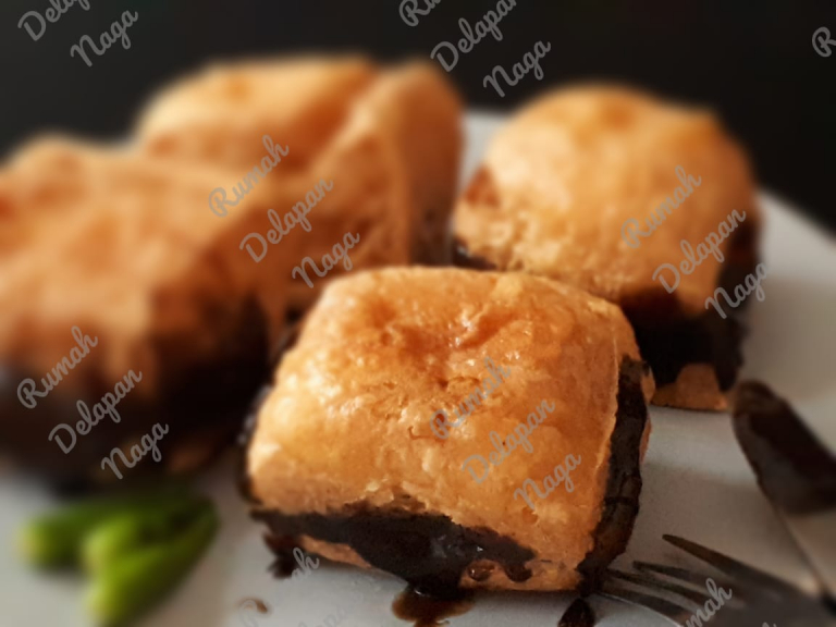 Tahu goreng disajikan dengan petis yang nikmat