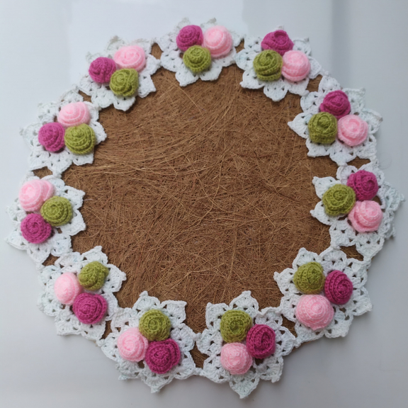 Placemat dari bahan Sabut Kelapa berfungsi sebagai Alas Pairing, bisa juga sebagai Alas untuk Vas Bunga atau Hiasan meja. Warna Natural, D. 33cm. Aman di pakai.