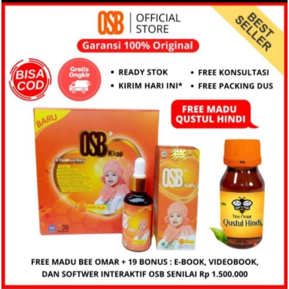 OSB kids vitamin otak untuk anak2 dengan bentuk madu rasa jeruk yang disukai anak2, efektif untuk meningkatkan daya ingat Dan kecerdasan anak