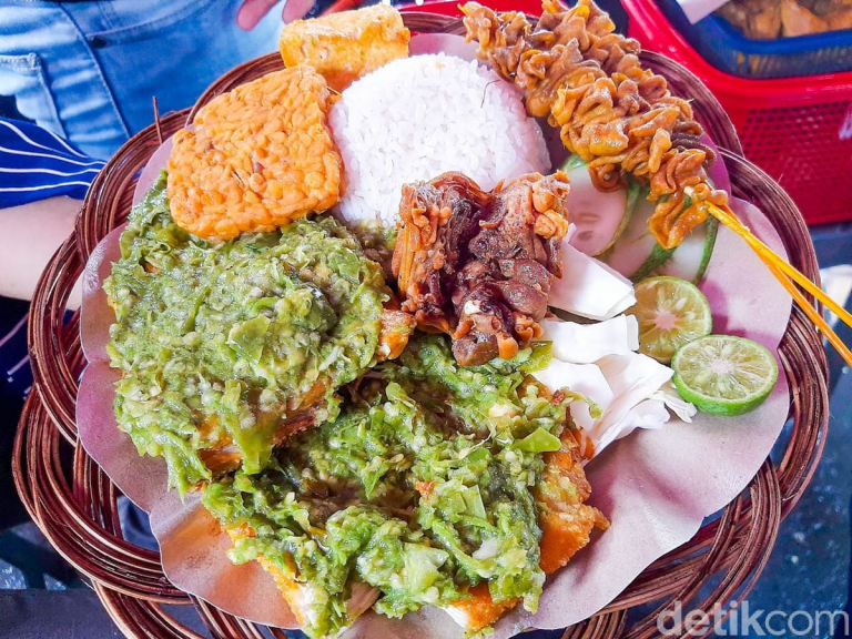 makanan ayam penyet dan ayam bakar dengan sambal khas sumatra