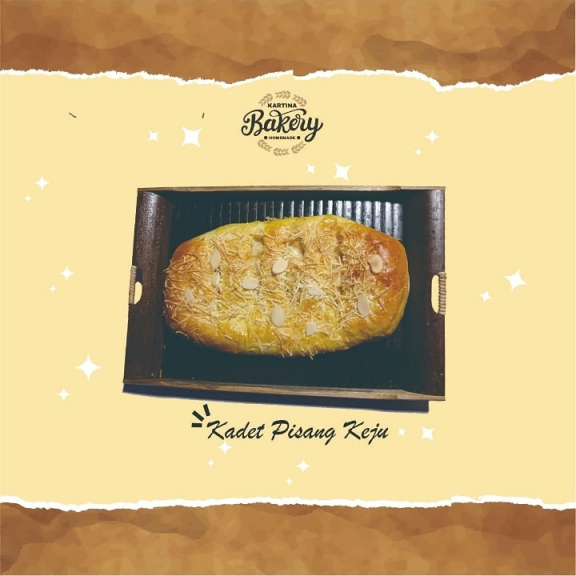 Roti dengan isian pisang dan keju lumer di di atas nya taburi keju dan kacang almond