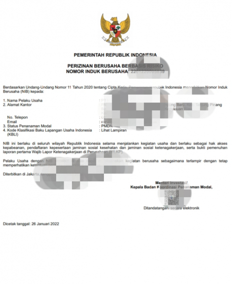 Sertifikasi Perizinan Berusaha (NIB)