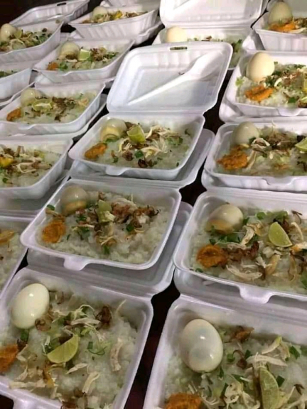 Menu sarapan pagi. BUBUR AYAM. -SEPORSI 7000.+Sate usus/ati,ampela. SEPORSI 10 rbu. + SATE+Bakwan dan Air teh manis /Air putih -