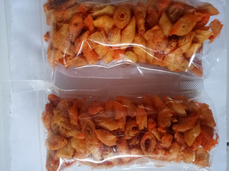 Keripik lumpia. Berbahan dasar kulit lumpia. Berbagai varian rasa. Rasa jagung manis,rasa balado,rasa original,rasa pedas manis.