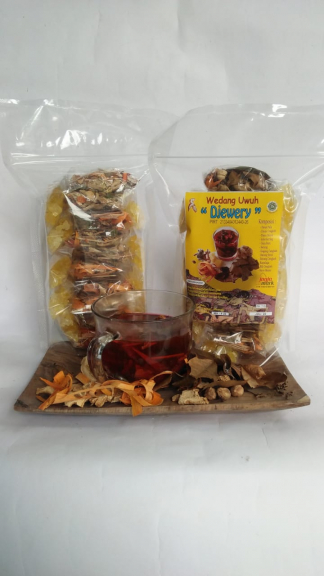 wedang uwuh adalah minuma khas dari yogyakarta yang sudah ada dari turun temurun. Kami memproduksi dan menjual wedang uwuh dengan merk DJewery, yg sudah ada PIRT, Sertifikat halal dan jogjamarknya. 1pack isi 10 kami kemas dalam 1 kantong pouch yg aman