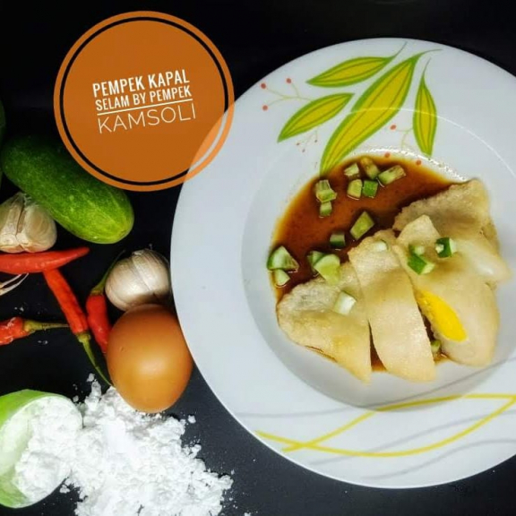 Salah satu varian pempek yang paling terkenal, pempek dengan isian telur ayam, rasanya gurih dengan tekstur renyah dan lembut, dimakan dengan saos cuko dan potongan timun
