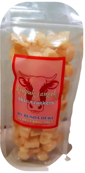 Kerupuk kulit khas Minang dikemas dengan pouch uk 16x32x012