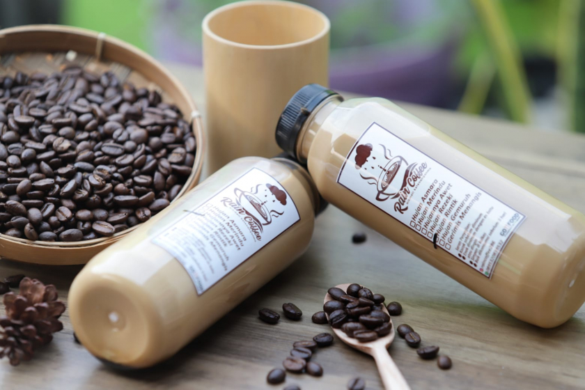 Kopi botolan dengan ukuran 1 liter. Terdiri atas espreso, susu, gula aren. Kopi hujan rezeki disebut juga kopi gula aren.