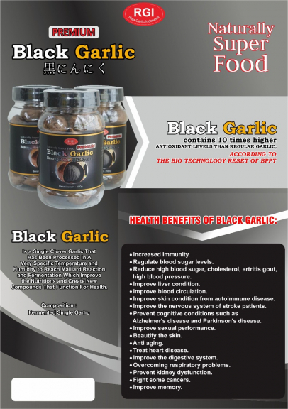 PREMIUM BLACK GARLIC, Ready To Eat, ukuran 100 gram isi 18 siung, konsumsi 1-2 siung 3 x / hari, sebelum / sesudah makan bagi yang mengalami asam lambung, untuk menjaga kesehatan dan membantu mempercepat penyembuhan berbagai penyakit menahun. Rasanya enak sekali, asam, manis, kenyal, padat, tidak tercium aroma garlic nya. Premium Black Garlic kami difermentasi di dalam mesin canggih selama 28 hari dengan kelembaban dan suhu tertentu.