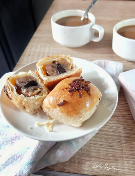 Bolen pisang DJUWARA dengan dua pilihan rasa isian, bolen pisang keju dan/atau bolen pisang coklat.
