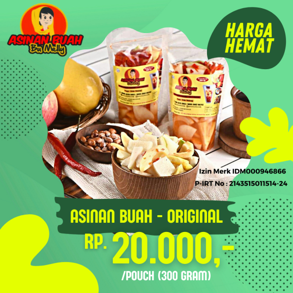 ASINAN BUAH "BU MELLY" dibuat & diracik untuk kepuasan pelanggannya, sehingga tercipta rasa ASAM, MANIS & PEDAS yang pas banget, disajikan dengan Buah-Buah Fresh, yaitu : Mangga, Nanas, Kedondong, Salak, dan bengkuang. Dikemas secara higienis dalam standing pouch ukuran 300 gram. KUAH ASINAN BUAH “BU MELLY” dibuat & diracik untuk kepuasan pelanggannya, sehingga tercipta rasa ASAM, MANIS & PEDAS yang pas banget. Dikemas secara higienis dalam botol ukuran 250 ml. ➡