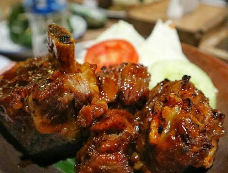 Iga bakar dimasak dengan bumbu rempah khas minang dengan rasa pedas dan gurih