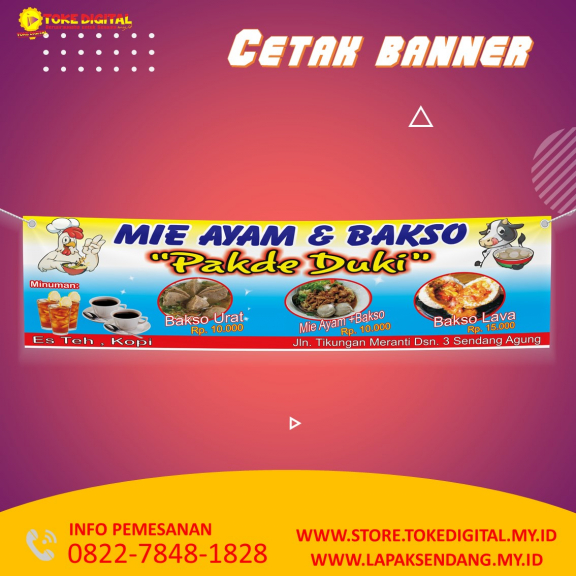 Bahan : Flexi cina 280 gsm Harga di atas untuk harga per-meter persegi (1m x 1m) File design kirim via email dan bagi yang belum memiliki design bisa kami bantu silahkan chat kami.