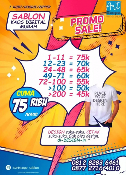 Terima Custom Sablon Kaos Bahan Cotton Combed Premium Berbagai Ukuran