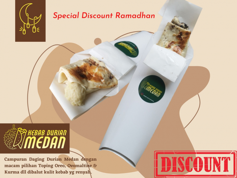 Campuran Full Daging Durian Asli Medan dengan Oreo, Ovomaltine dibalut kulit kebab yang renyah.