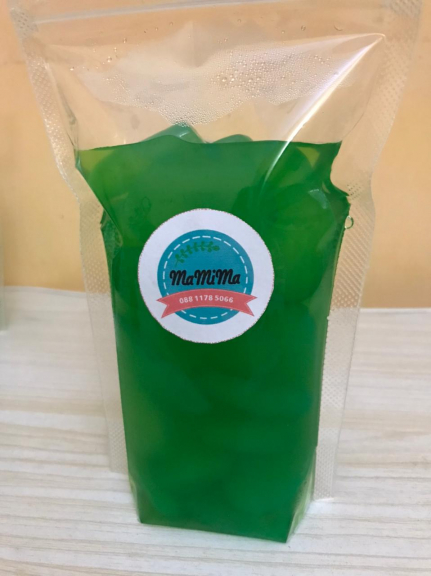 Manisan Kolang Kaling beraroma pandan, yang terbuat dari Kolang Kaling, gula alami, pasta pandan, dan daun jeruk. Tanpa pemanis buatan, tanpa pengawet.