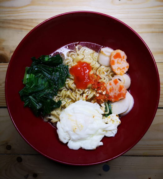 makanan yang terbuat dari mie dan berbagai macam tambahan (toping) seperti sosis, keju, Suki, bakso, sawi,kornet dll