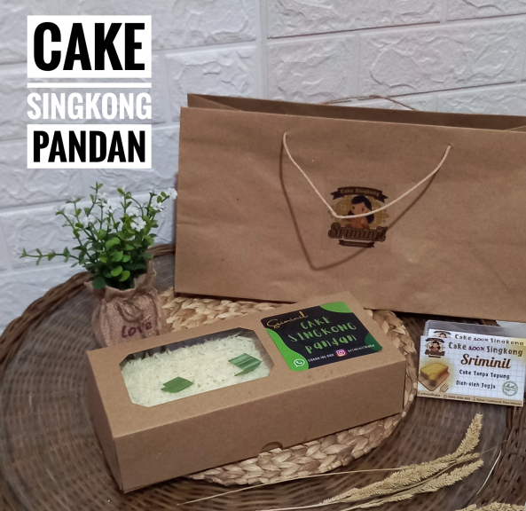 Cake berbahan baku singkong, tanpa tepung, gluten free dengan citarasa pandan dan bertopping krim & keju parut