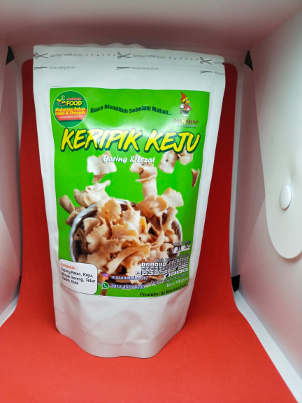 Kripik keju terbuat dari tepung ketan dan keju pilihan serta di goreng dengan minyak sawit yg melalui tiga kali penyaringan dan di campur dengan gula pilihan,sehingga memiliki rasa yg gurih dan kriuk.