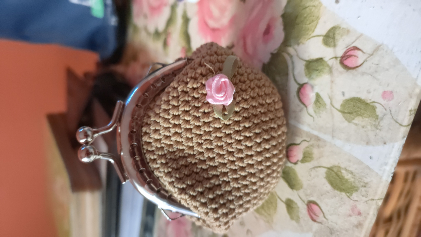 Pouch rajut dengan ukuran diameter 6 cm bisa untuk koin sekaligus gantungan kunci