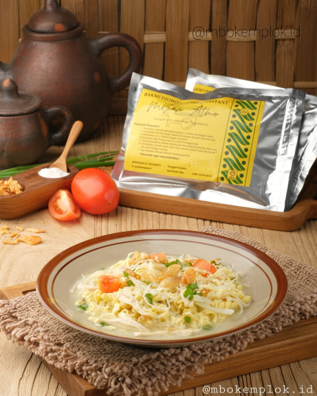 Bakmi Djowo Instan Mbah Atmo dengan cita rasa khas Yogyakarta. Bakmi Djowo Instan dilengkapi dengan Mie Kering, Bumbu, Bang Goreng dan Daun Bawang Kering yang kini dapat dinikmati dan dimasak kapan saja.