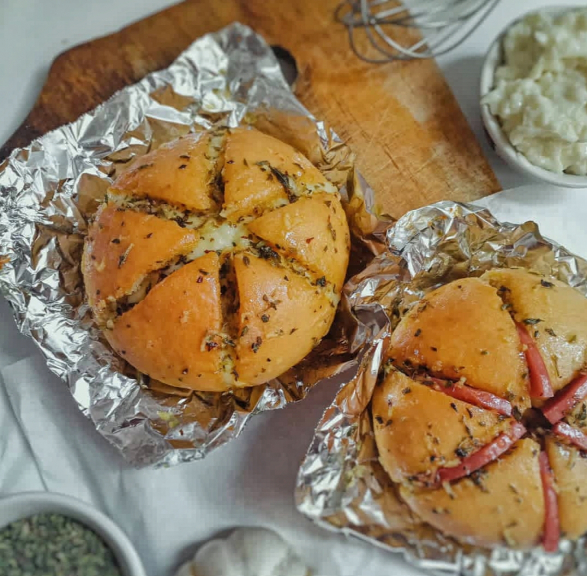 Korean garlic bread, roti yang dibuat dengan campuran cream keju parutan bawang putih lalu di oven kembali hingga kecoklatan. Saat ini tersedia beef dan cheese