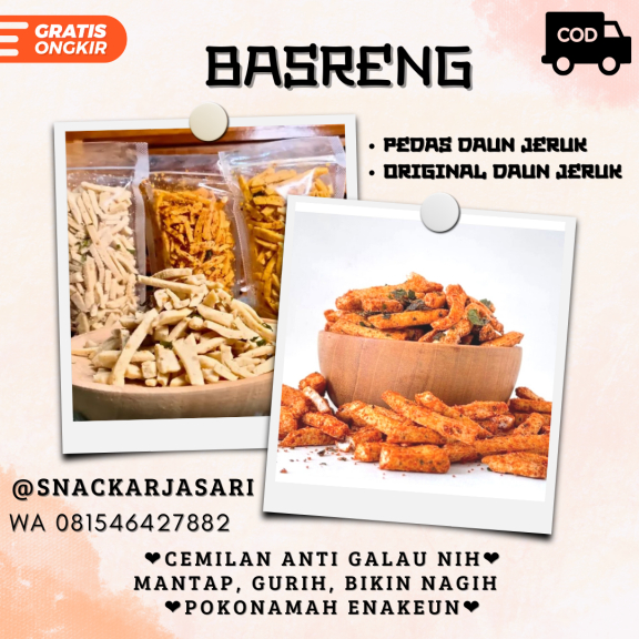 Basreng Stik / Baso Goreng Terdapat varian rasa pedas daun jeruk Original daun jeruk