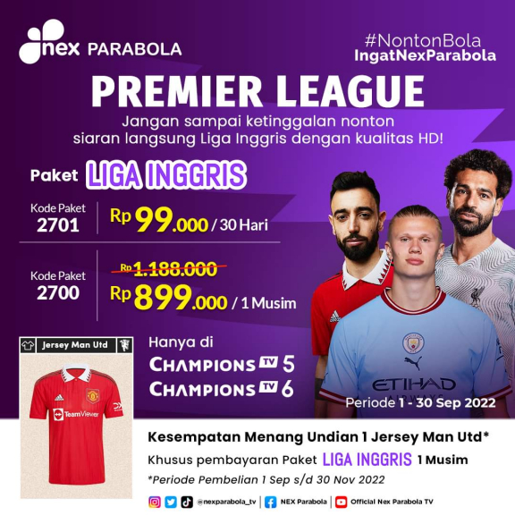 Paket Liga Inggris hanya tayang di Nex Parabola di Channel Champions 5 & 6