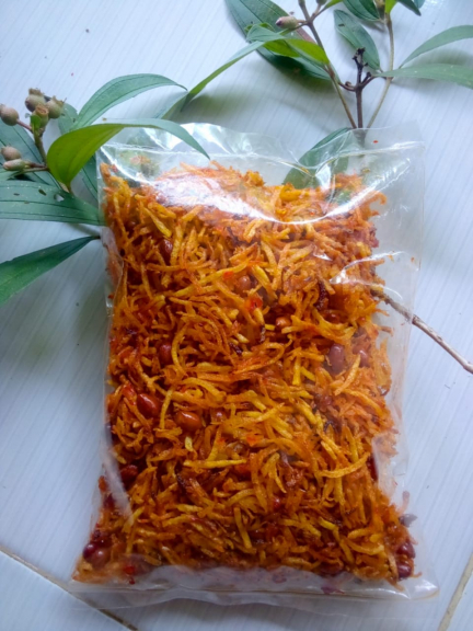 Bahan kentang asli diserut Rasa asin gurih sedikit pedas