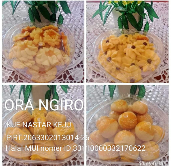 Kue Nastar Keju merupakan hasil produk kami yang sudah memiliki PIRT dan bersertifikasi halal dari MUI. Selain produk kue nastar ORA NGIRO juga membuka bisnis warung makan.