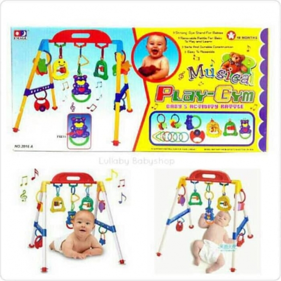 Baby Playgym Musical Lokal ( Made in INDONESIA ) Sis/agan jangan takut belanja di toko kami karena playgym kami sebetulnya adalah produk terlaris setokopedia dgn harga termurah. HARGA PROMO hanya di BOBO Baby Shop!! "Kualitas Terbaik, Harga Bersahabat, Buat Apa Pilih Yang Lain??" Playgym yang dilengkapi tujuh jenis rattle. Tekan bentuk hati di boneka beruang untuk mengeluarkan musiknya. Bisa digunakan bayi dari new born hingga bisa berdiri Untuk merangsang kemampuan motorik kasar dan halus bayi. Dilengkapi dengan mainan-mainan kecil yang bisa dilepas untuk dimainkan secara terpisah.