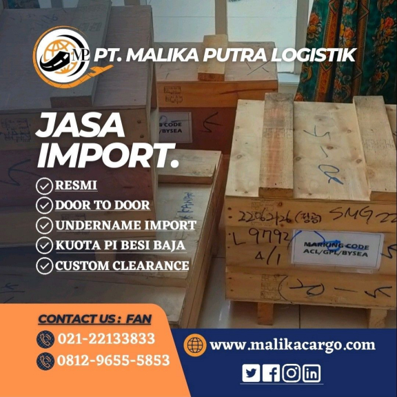 PT. MALIKA PUTRA LOGISTIK. JASA IMPORT DOOR TO DOOR TERIMA SEMUA JENIS BARANG, UNTUK INFO LEBIH LANJUT BISA HUB DI BAWAH INI. WA: 081296555853 WWW.MALIKACARGO.COM