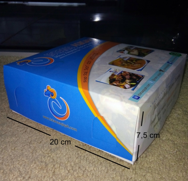 Cetak box nasi / box catering untuk memenuhi kebutuhan bisnis Anda. Ukuran : 20cm x 20cm Bahan : Kertas Duplex Model : Semat, tanpa repot harus di steples satu2. Harga di atas untuk minimum cetak 10.000 pcs.
