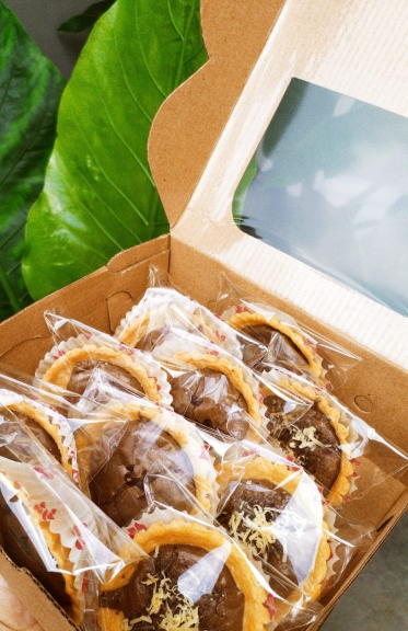 Pie Brownies Dengan 3 pilihan topping chocochips, almond slice atau parutan keju siap melengkapi hari santai Anda. Per box isi 10 dapat memilih sendiri toppingnya. Cocok juga untuk hampers.