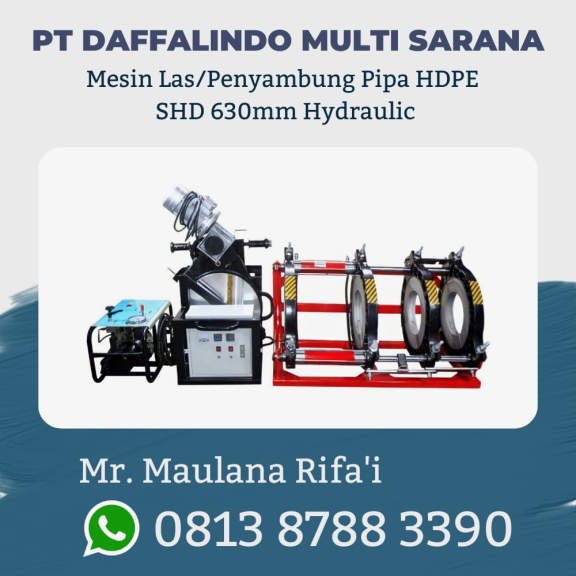 Mesin Las Pipa HDPE SHDS 630mm Hydraulic bisa menyambung pipa hdpe dari ukuran 12 inch sampai 24 inch dengan cara hydraulic atau otomatis.