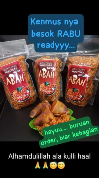 Kentang goreng Mustofa, kentang pilihan yang berkualitas di kemas pembungkus plastik putih dan tahan hingga 4 bulan.