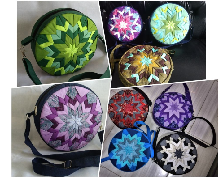 Terbuat dari bahan kain katun polos dan batik Bali yang dijahit menjadi sebuah tas cantik dengan pola folded star