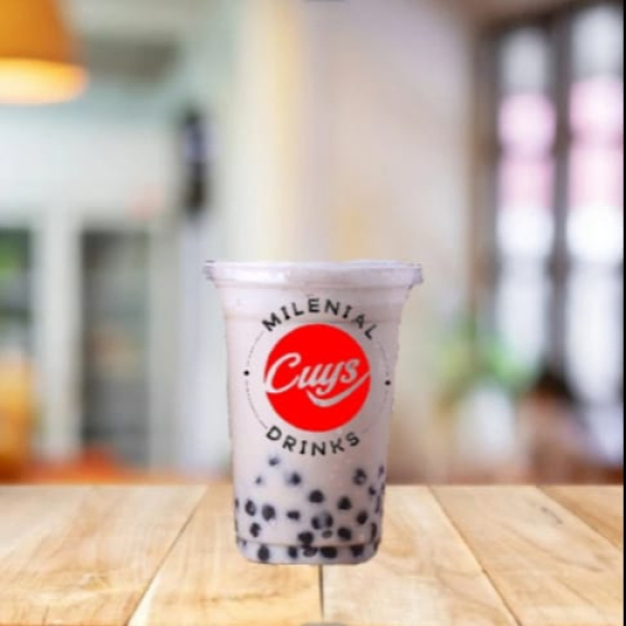 Percampuran antara susu uht, susu skm, creamer bubuk, bubuk choco cookies simple sirup dan boba