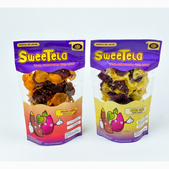 SweeTela merupakan Keripik yang terbuat dari Ubi Jalar unik dan memiliki 2 varian rasa yaitu Pedas Manis & Gurih
